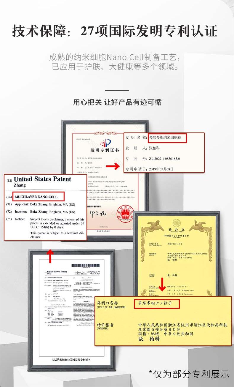在知識產(chǎn)權(quán)領(lǐng)域,納米透皮吸收技術(shù)已在中美日韓等多個國家和地區(qū)共計(jì)獲得27項(xiàng)國際發(fā)明專利證書,享有獨(dú)家自主知識產(chǎn)權(quán)。