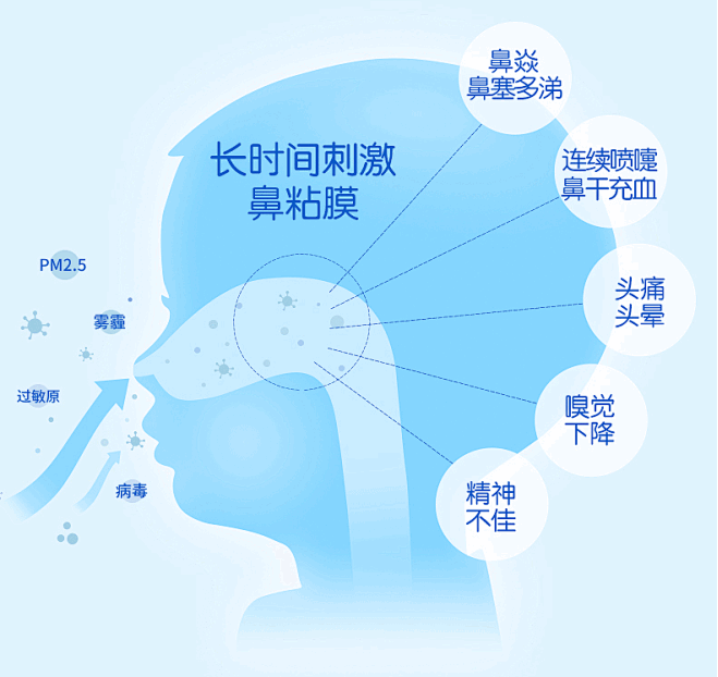 季節(jié)交替時,溫差變化劇烈,空氣濕度波動,加上花粉、塵螨等過敏原濃度飆升,鼻腔黏膜這個“前線哨所”瞬間壓力山大!原本負(fù)責(zé)過濾和加濕空氣的黏膜,在刺激下變得紅腫、分泌物激增,直接后果就是:鼻塞(通道堵塞)、鼻癢(神經(jīng)敏感)、流涕(分泌物失控)、噴嚏(反射性排異)甚至嗅覺罷工(氣味分子無法抵達受體)。