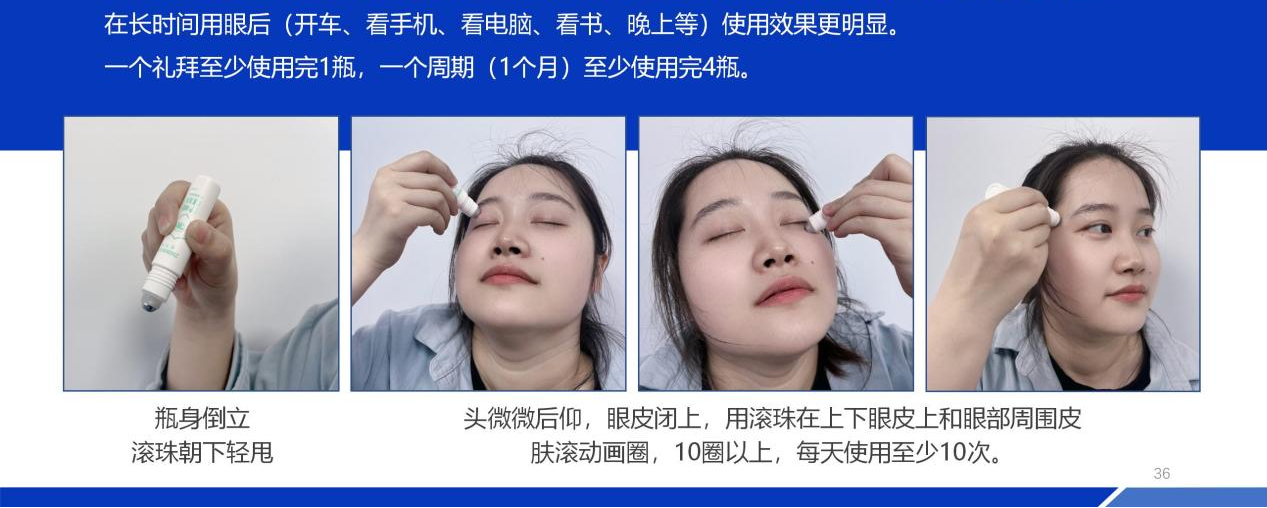 優(yōu)勢一 安全無刺激:不同于眼藥水等眼部產(chǎn)品,倍可瑞®眼部修護保健液僅需閉眼后,使用滾珠在上下眼皮、額頭、太陽穴部位各按摩滾動、畫圈十圈以上,滾珠上的液體不直接進入眼球,對眼睛無刺激、無傷害;在保護眼睛的同時,通過皮膚快速滲透、進入眼睛,對眼睛起到滋養(yǎng)、修護和保健作用。
