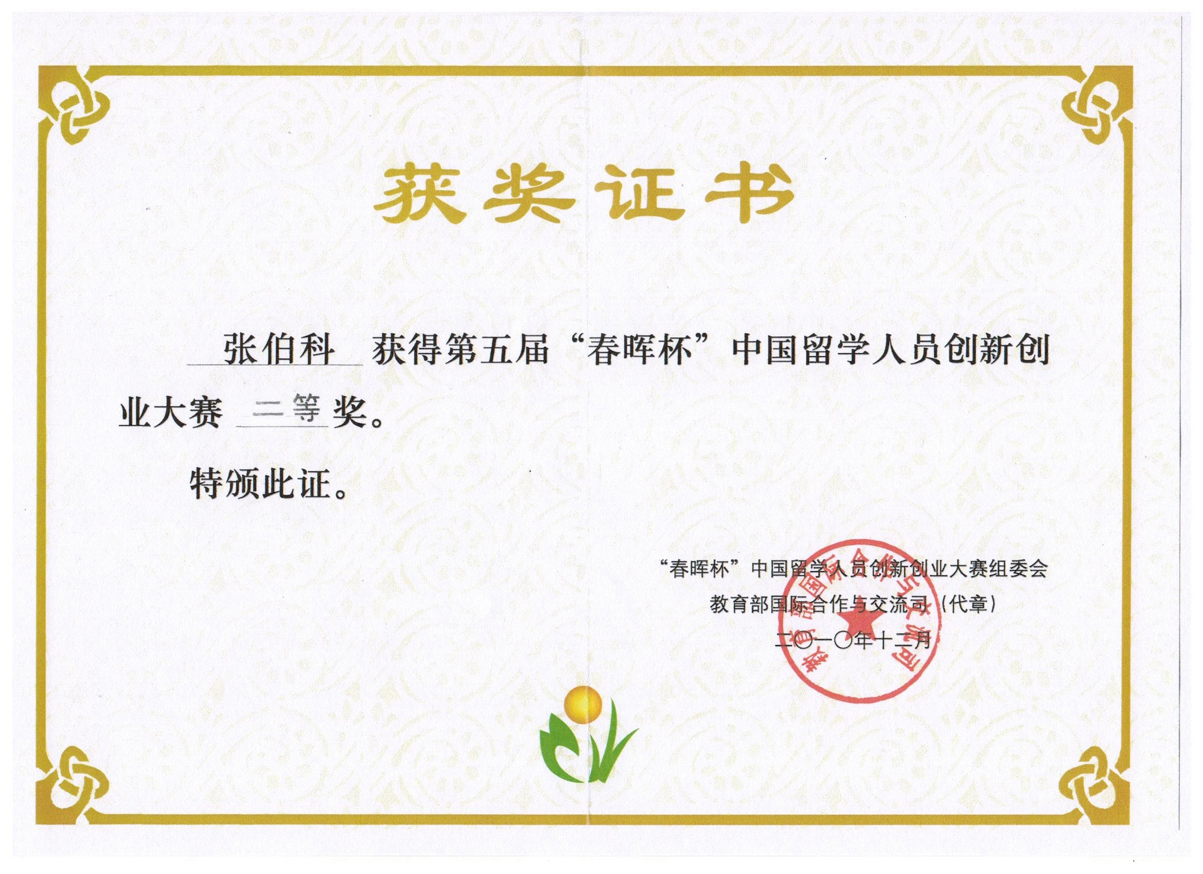 榮獲中國科技部與教育部聯(lián)合主辦的第五屆“春暉杯”大賽獎(jiǎng)