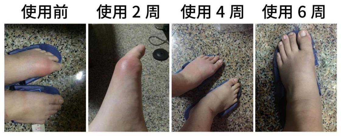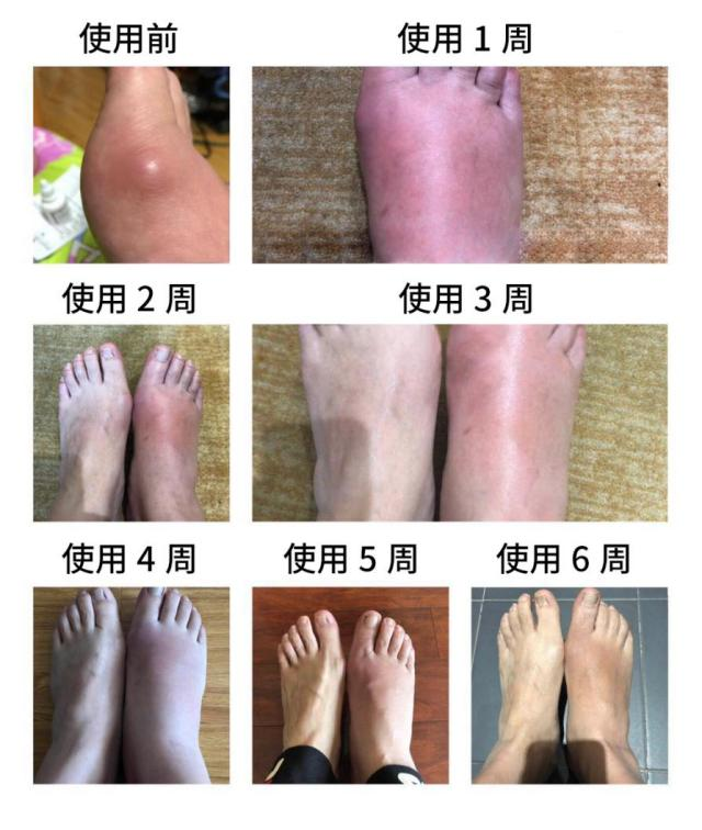 使用前痛風(fēng)石直徑3.7cm,使用6周后痛風(fēng)石完全消除。